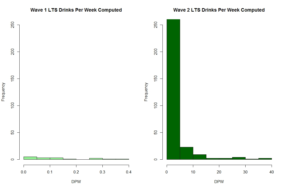 Computed drinks per week for LTS waves 1 and 2.